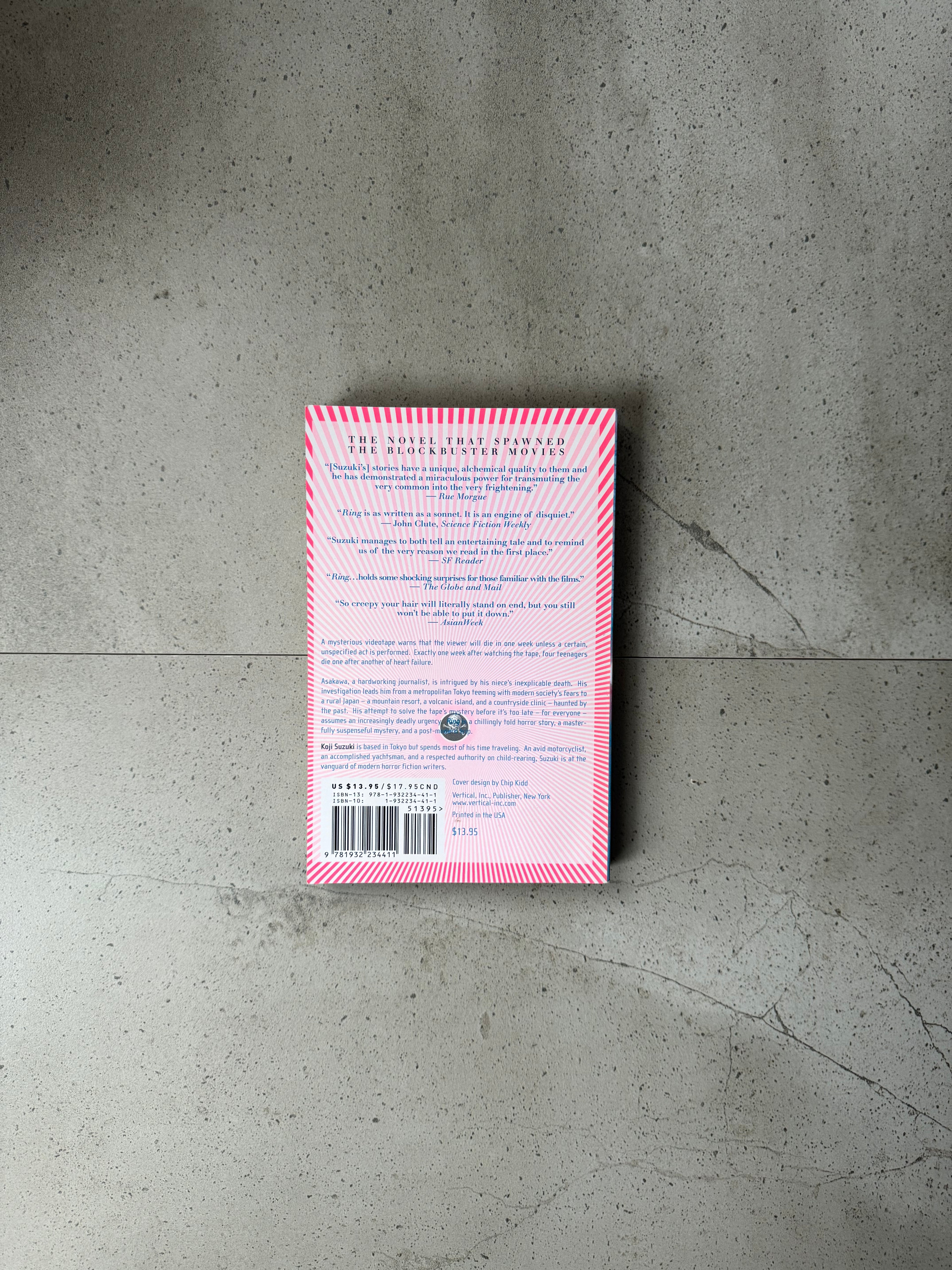 Asakawa, a hardworking journalist, is intrigued by his niece’s inexplicable death. His investigation leads him from a metropolitan Tokyo teeming with modern society’s fears to a rural Japan—a mountain resort, a volcanic island, and a countryside clinic—haunted by the past. His attempt to solve the tape’s mystery before it’s too late—for everyone—assumes an increasingly deadly urgency. Ring is a chillingly told horror story, a masterfully suspenseful mystery, and post-modern trip.